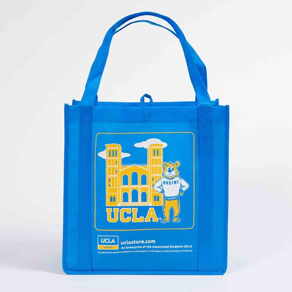 Our UCLA Reusable Bag lets you sustainably carry groceries, books or other essentials. Keep several on hand to help reduce the amount of single use bags in our environment.