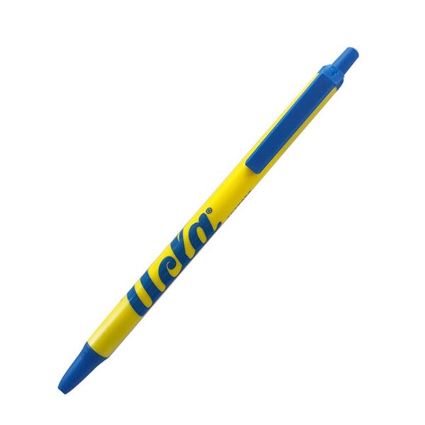 Pinit UCLA Script Retractable Pen SKU: 63702-GOLD-- $2.00 Quantity discounts available QuantityPrice Quantity -+ Add to Shopping Cart Details Our UCLA Script Retractable Pen has black ink, but you'll be writing with the spirit of Bruin blue and gold.PlasticBlack inkImportedBy Spirit Products Details Back DetailsOur UCLA Script Retractable Pen has black ink, but you'll be writing with the spirit of Bruin blue and gold.PlasticBlack inkImportedBy Spirit Products